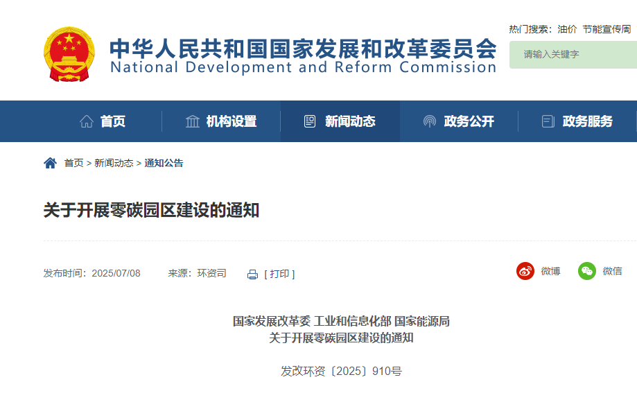 國(guó)家發(fā)展改革委 工業(yè)和信息化部 國(guó)家能源局印發(fā)《關(guān)于開展零碳園區(qū)建設(shè)的通知》 2025-07-08