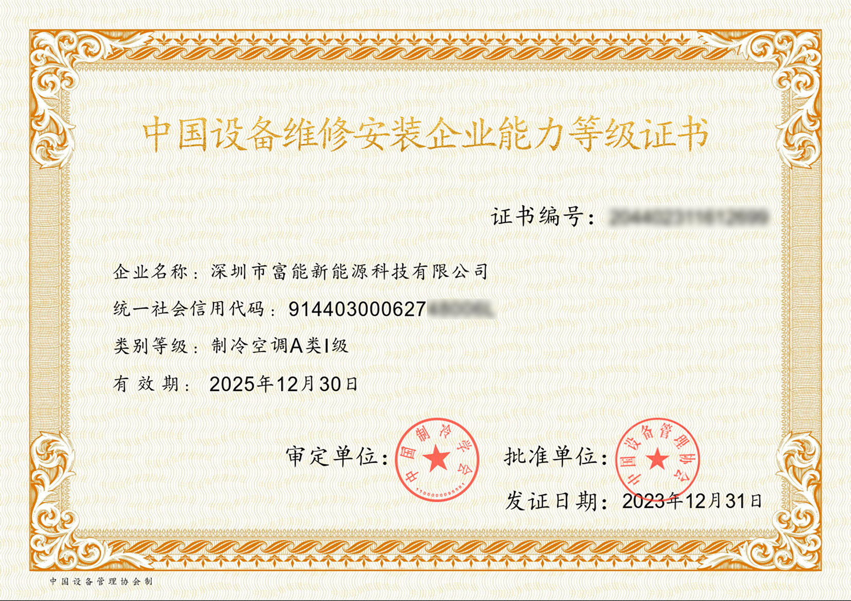 設(shè)備資質(zhì)A類1級(jí)